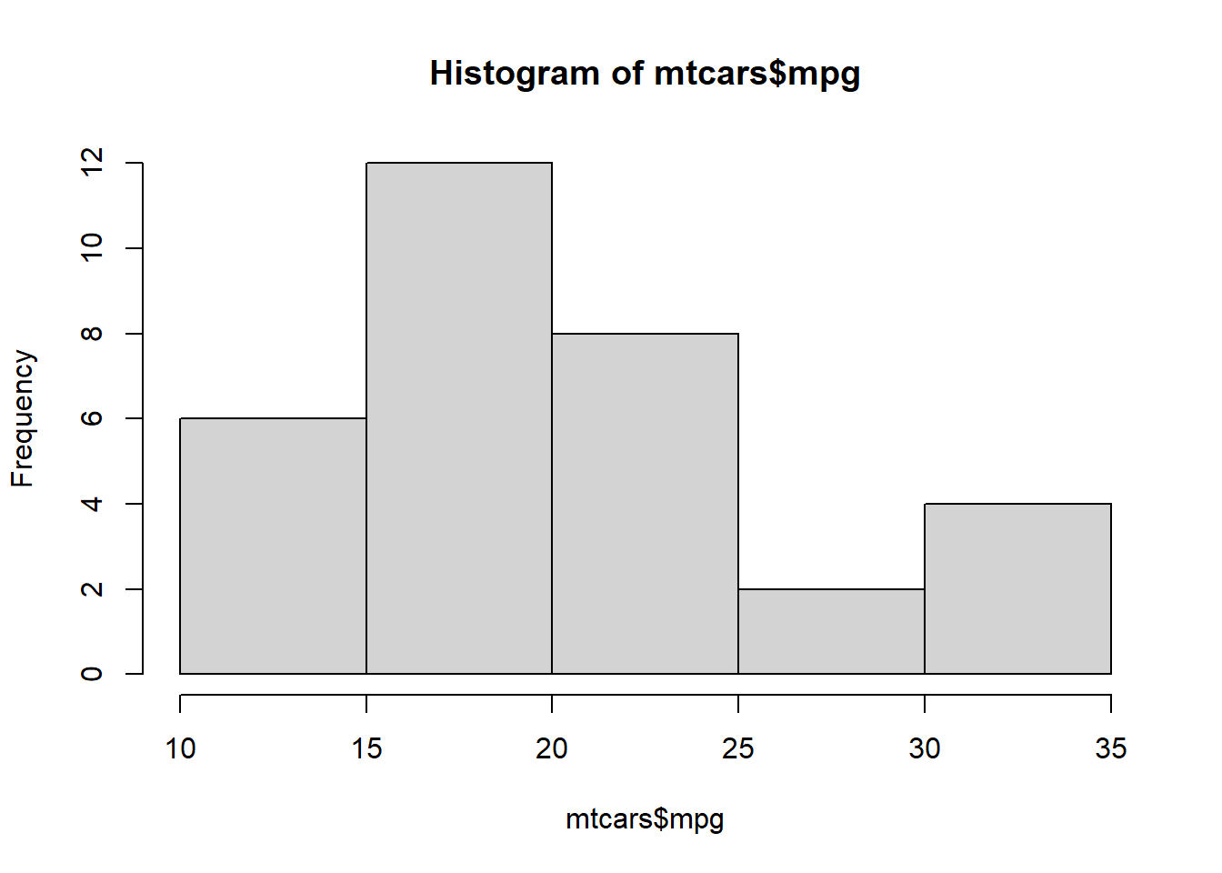 hist(mtcars$mpg)