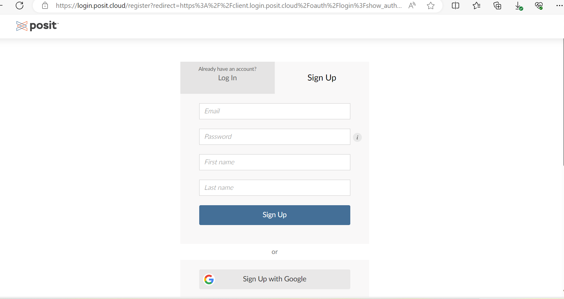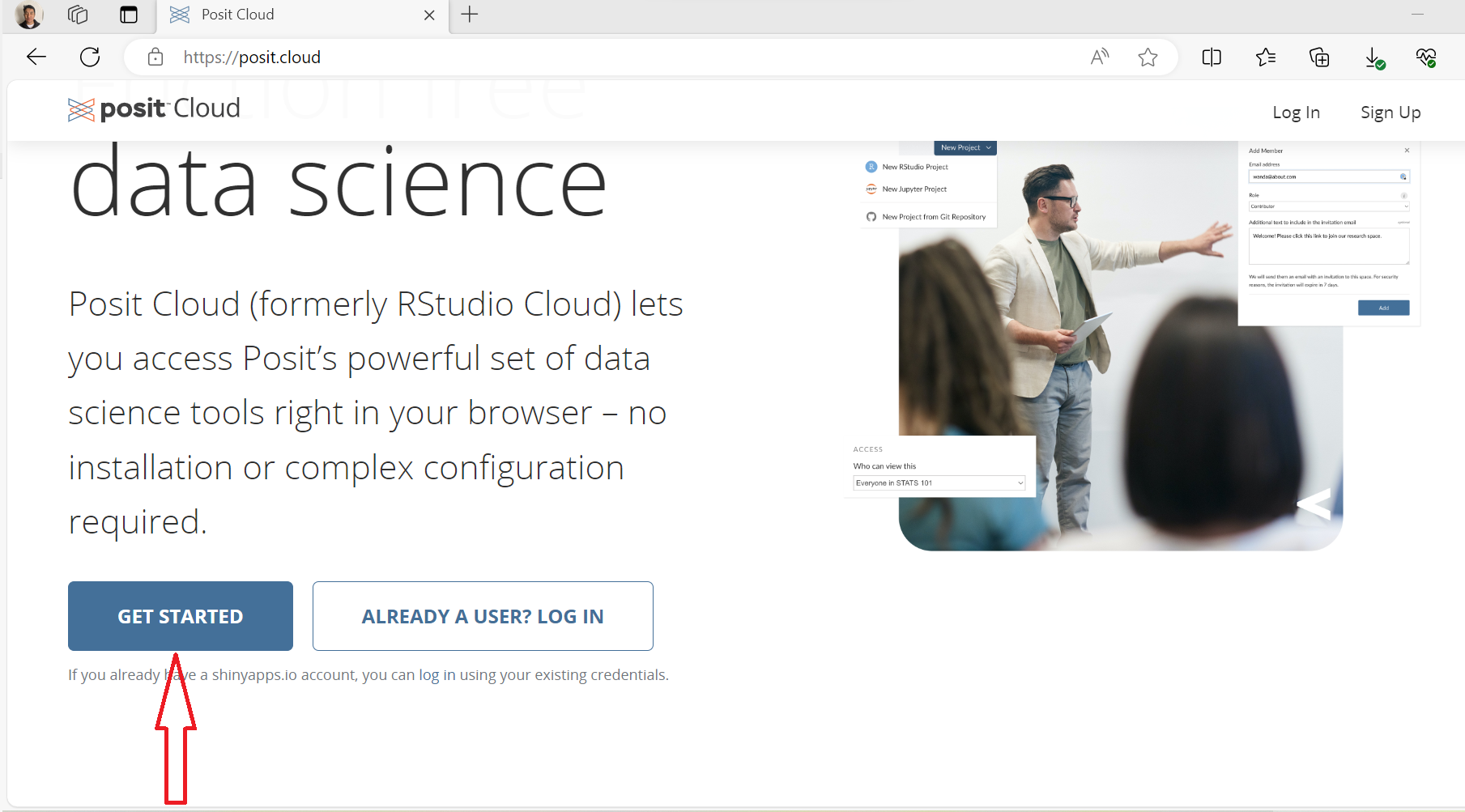 RStudio cloud is a web-based platform that allows users to access R and RStudio from a web browsers without needing to install R and RStudio.It is accessible from any device with an internet connection.To get started with RStudio Cloud, you can visit the RStudio Cloud website and create an account as follows