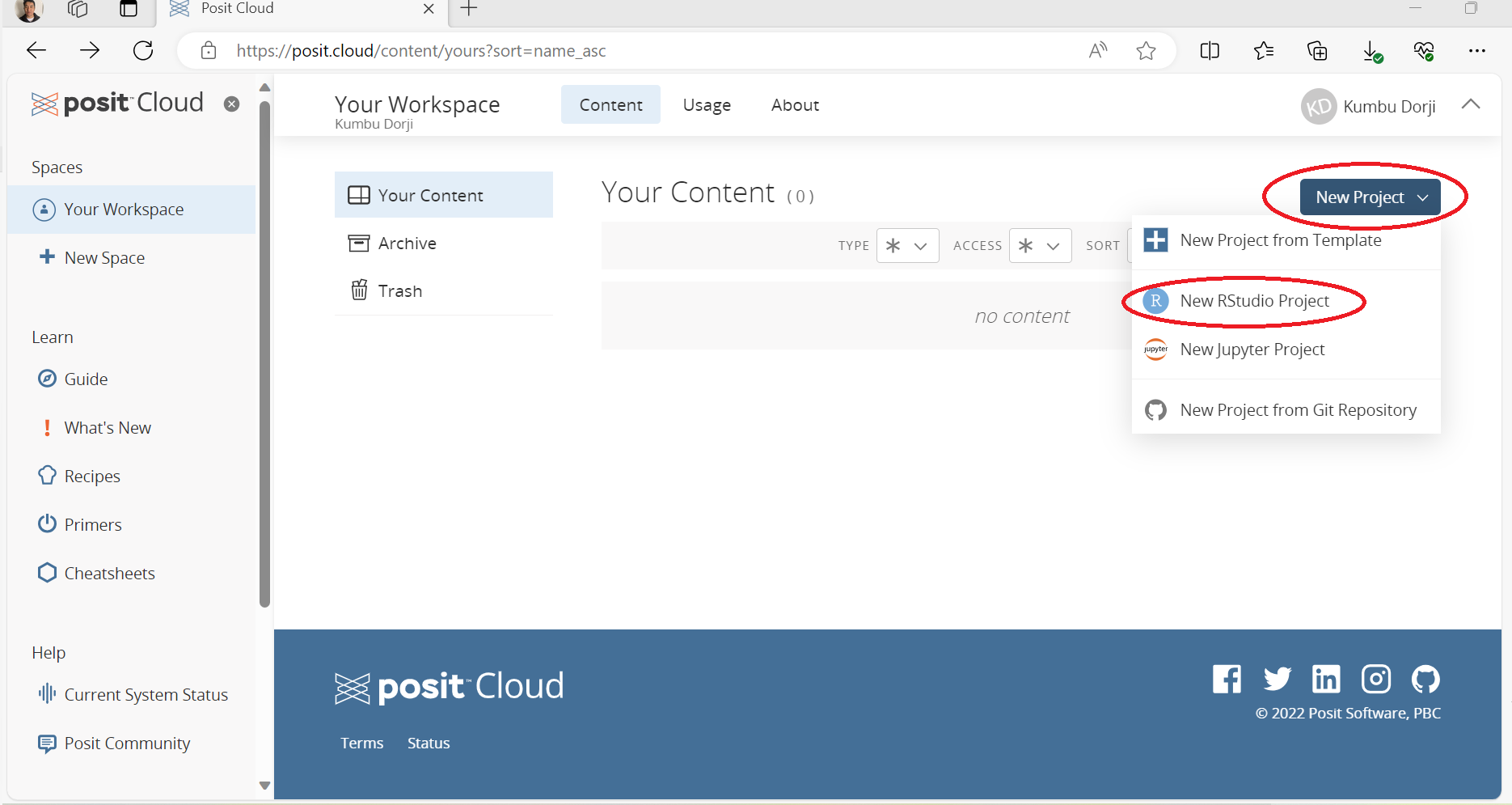 Click on the ‘New Project’ and then on the ‘New RStudio Project’.