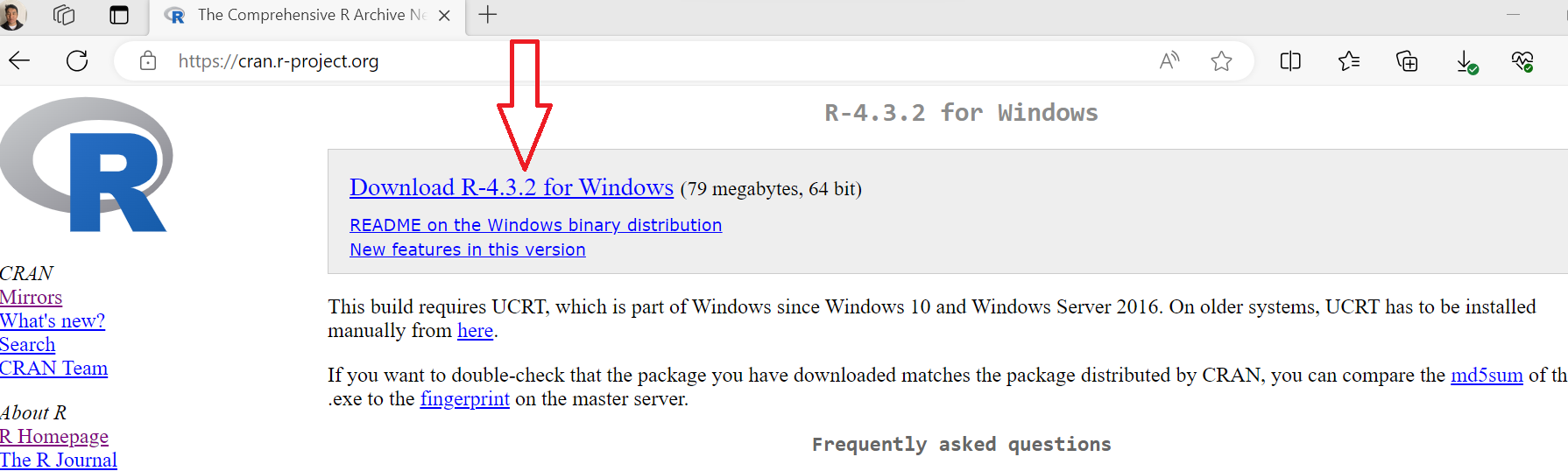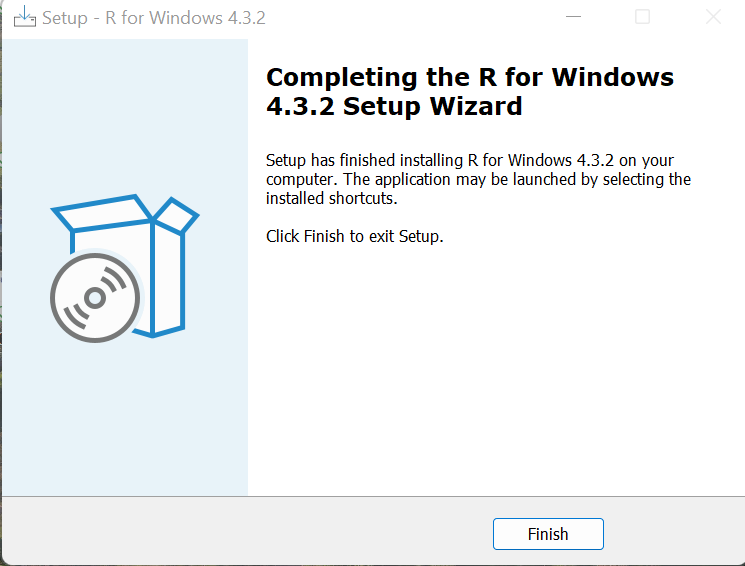 Run the downloaded installer by double clicking on the ‘R-4.3.2-win.exe’ file.