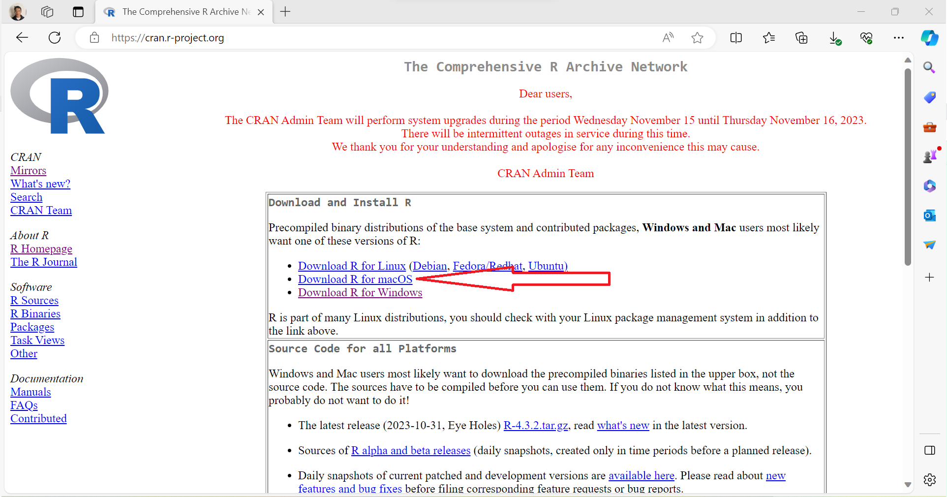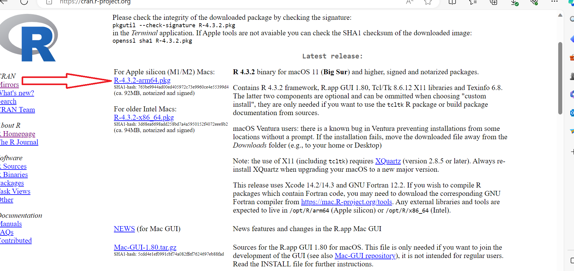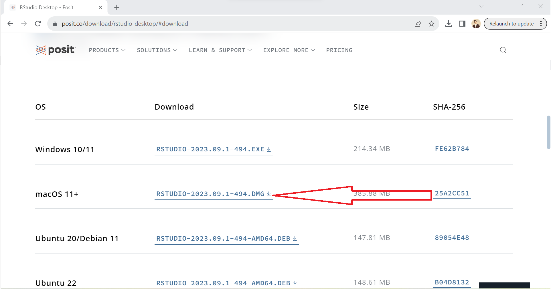 Click on the **‘RSTUDIO-2023.09.1-494.DMG”’* link as shown below.