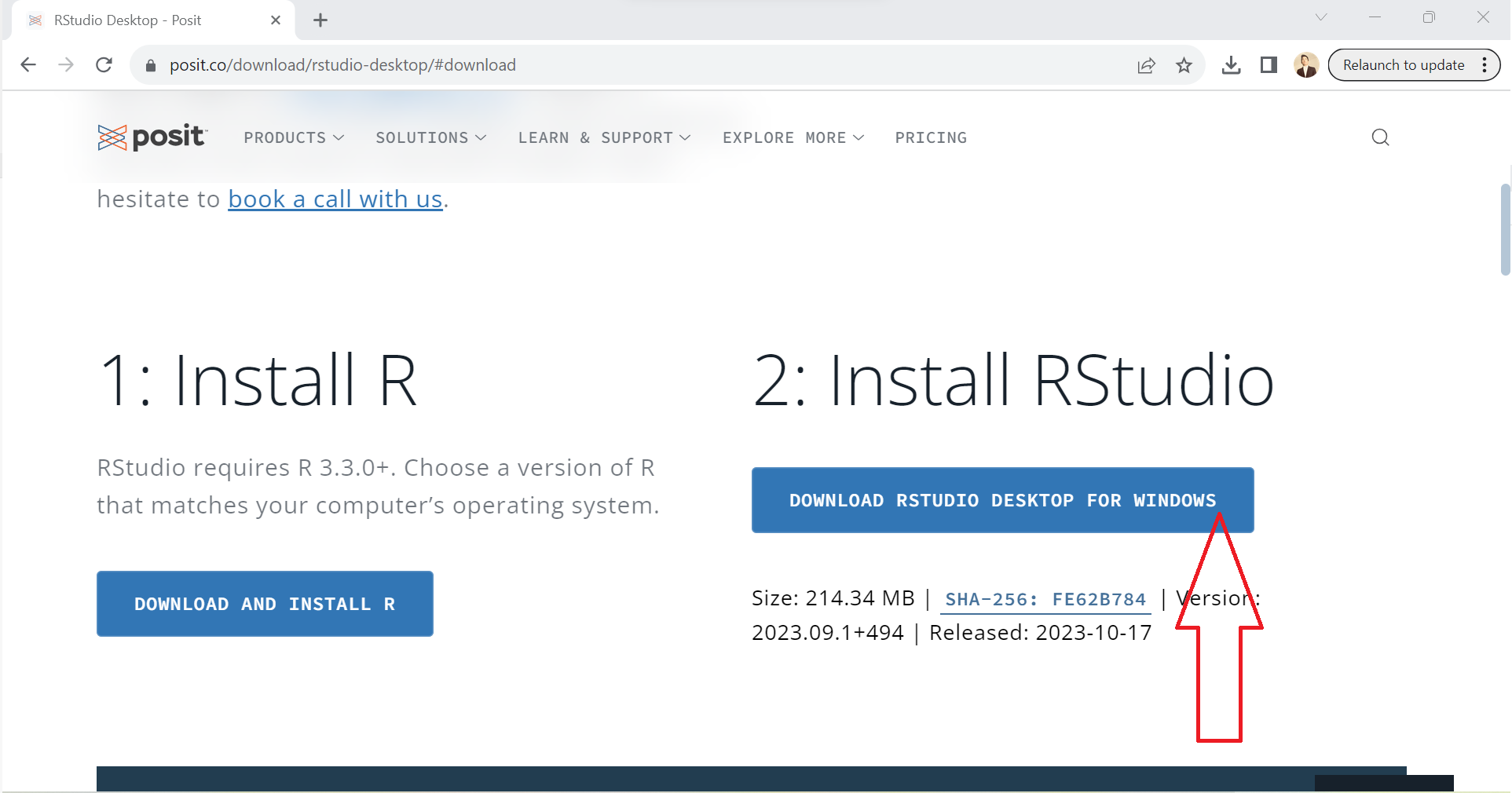 Click on the ‘Download Rstudio Desktop for Windows’ link.