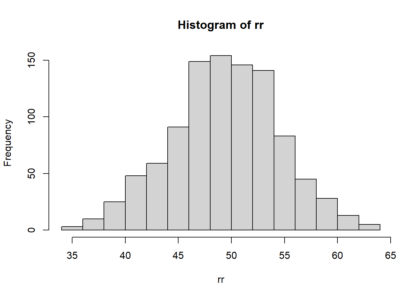 rr <- rbinom(n=1000, size=100, prob=0.5)