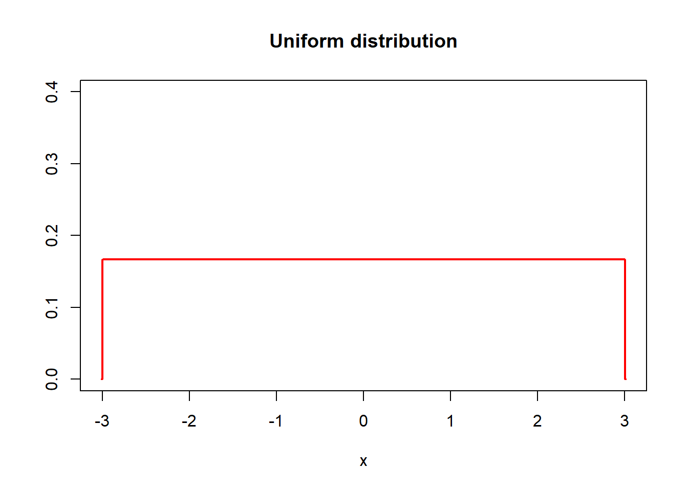 plot(x, dnorm(x, mean = 0, sd = 1), type = "l",